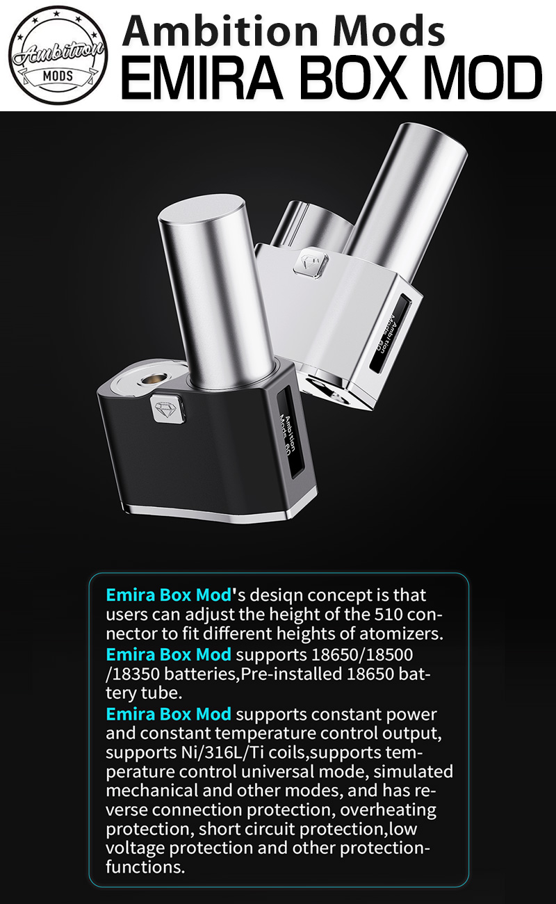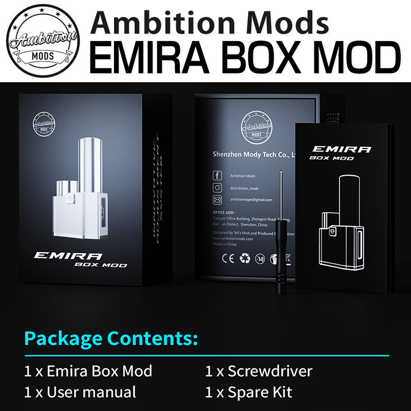 Ambition Mods とイタリア Telli's Mod のコラボレーションによって誕生した EMIRA BOX MOD。