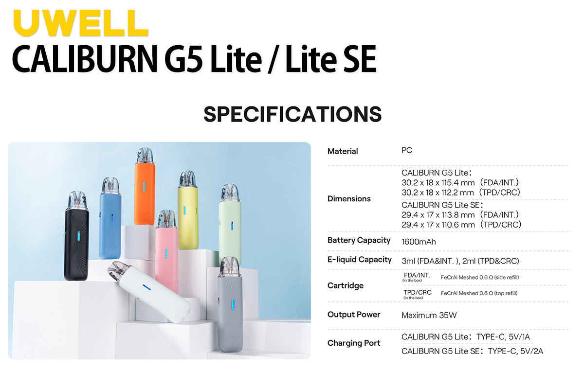 UWELL Caliburn シリーズに、Caliburn G5 Lite SE と Caliburn G5 Lite が登場しました。