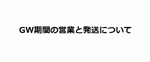 GW中の店舗営業及び発送について GW休業は定休含む4/28,29並びに5/3~5/6の後半4連休とさせていただきます。